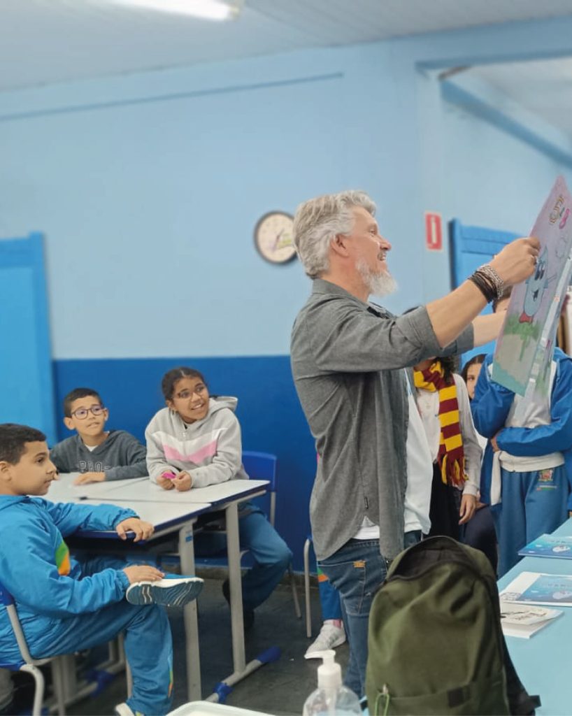 Na quarta-feira, dia 8 de outubro, o autor do livro “O Pinguinho”, James Capelli, participou de encontro com cerca de 80 alunos e suas professoras na Escola Municipal de Ensino Fundamental Professor Cassiano Faria, em São Bernardo do Campo.