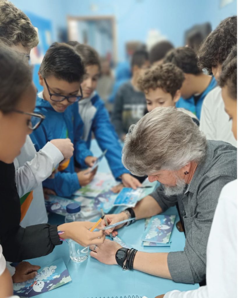 No encontro com as crianças sobre o livro “O Pinguinho”, James conversou sobre o processo de criação do livro e falou sobre o ciclo da água e a importância dela para a vida no planeta Terra. As crianças participaram ativamente e entregaram trabalhos que realizaram para o autor.