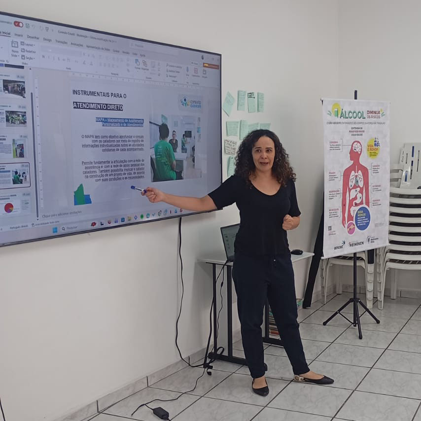 Ao longo dos meses de execução, o programa capacitou profissionais da saúde e da assistência social para prevenir o uso abusivo de álcool entre catadores e catadoras em situação de vulnerabilidade social, ampliando o impacto da metodologia de Rastreio e Intervenção Breve (SBI – Screening and Brief Intervention) recomendada pela Organização Mundial da Saúde (OMS). Como parte das ações, o questionário AUDIT — instrumento da OMS para identificar padrões de consumo de álcool — foi aplicado aos catadores atendidos, auxiliando na identificação de níveis de risco e na orientação para encaminhamentos adequados. A iniciativa também fortaleceu a articulação com unidades básicas de saúde, Centros de Atenção Psicossocial (CAPS) e equipes de referência do território, reforçando a rede de cuidado e a redução de danos.