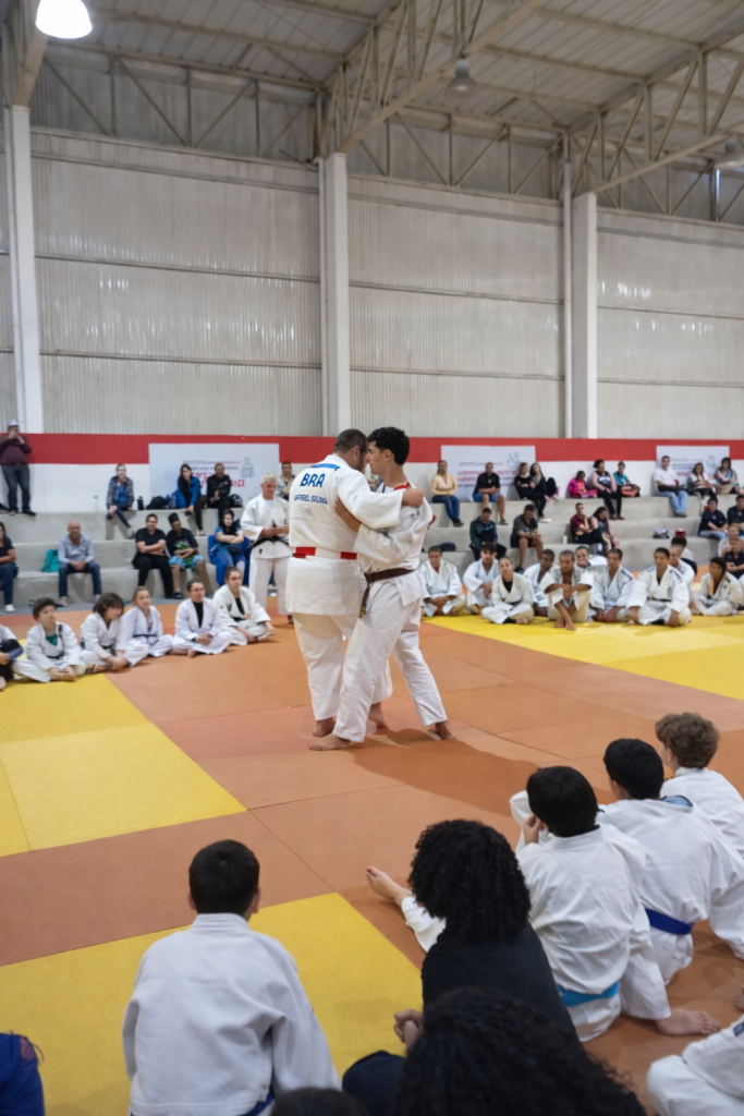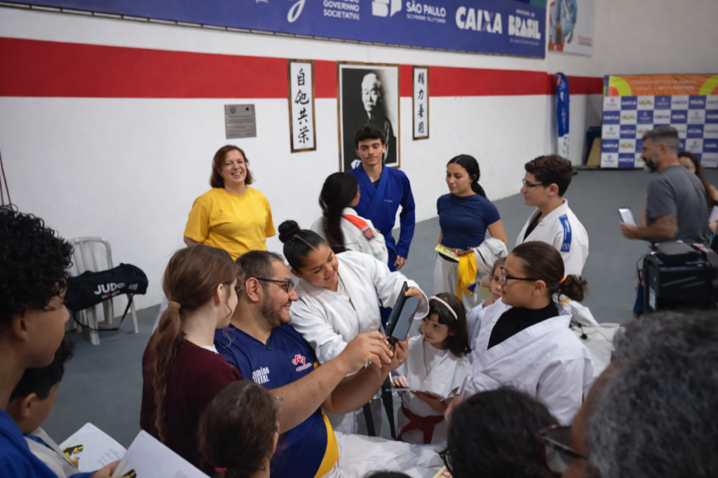 Durante a atividade, os participantes ainda acompanharam demonstrações de técnicas de judô apresentadas por Baby, o que tornou o momento ainda mais interativo e inspirador.